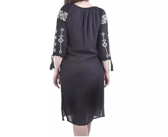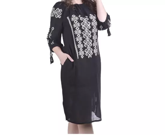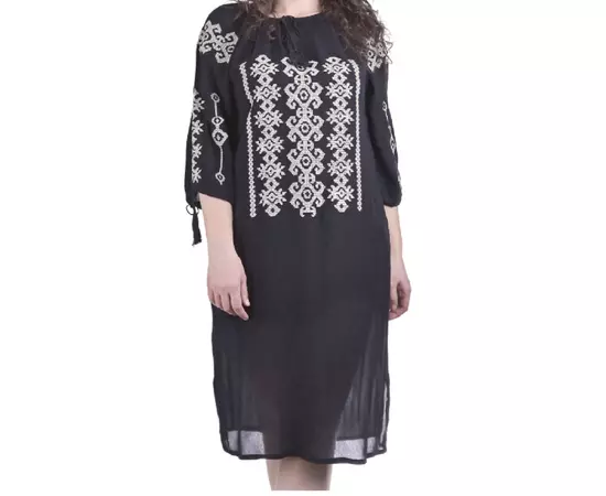 Rochie traditionala midi neagra cu motiv geometric gri - RTM45