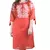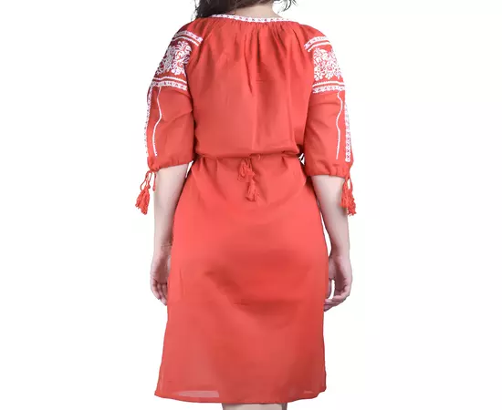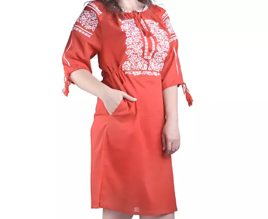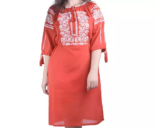 Rochie traditionala midi rosie cu motiv floral alb - RTM49
