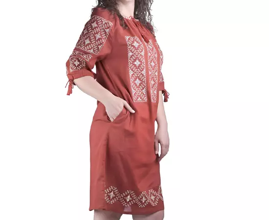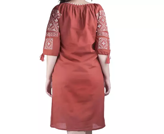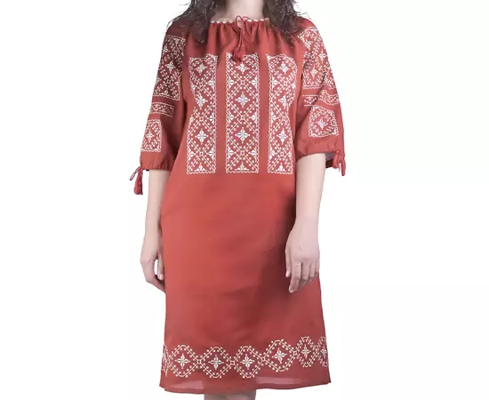 Rochie traditionala midi rosie cu motiv geometric crem - RTM51