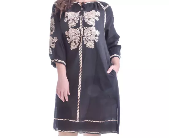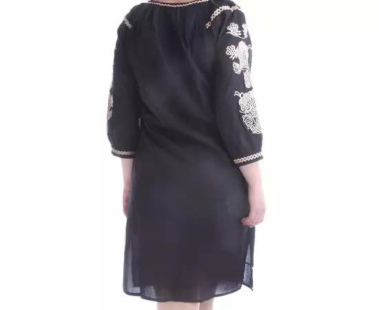 Rochie Traditionala Midi Neagra cu Motiv Floral Crem - RTM26