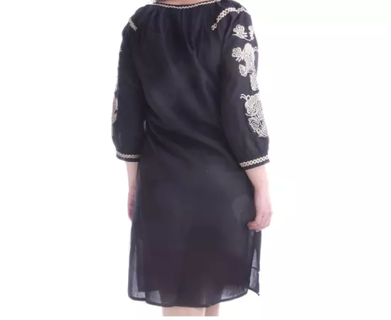 Rochie Traditionala Midi Neagra cu Motiv Floral Crem - RTM26