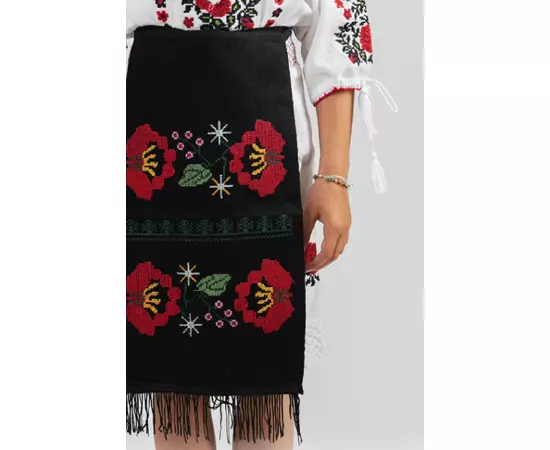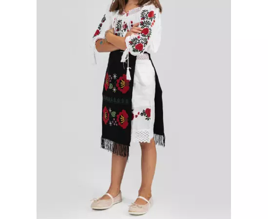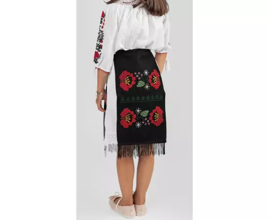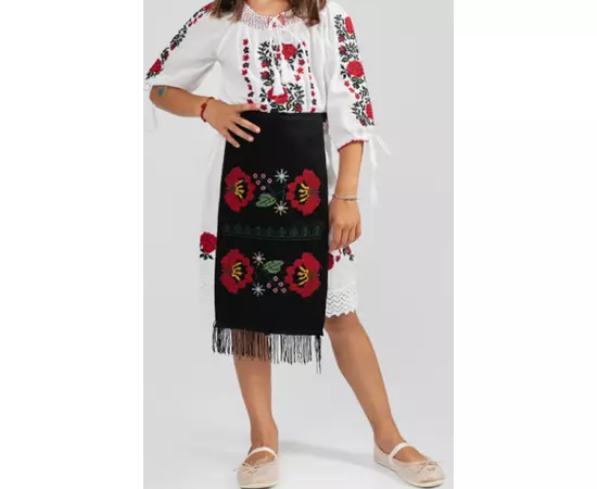 Catrinta Traditionala Neagra pentru Fetite cu Broderie Florala Rosie - CTF01