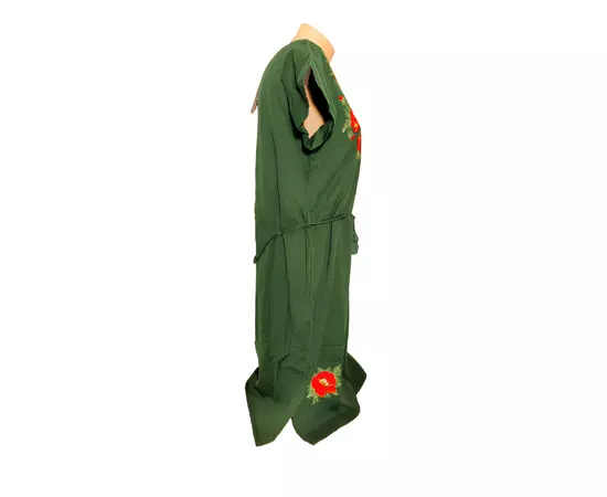 Rochie Traditionala Midi Verde cu Motiv Floral Rosu - RTM13