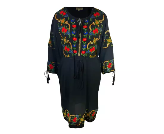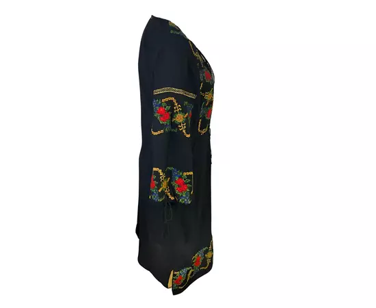 Rochie traditionala neagra cu motiv floral multicolor - RTM61