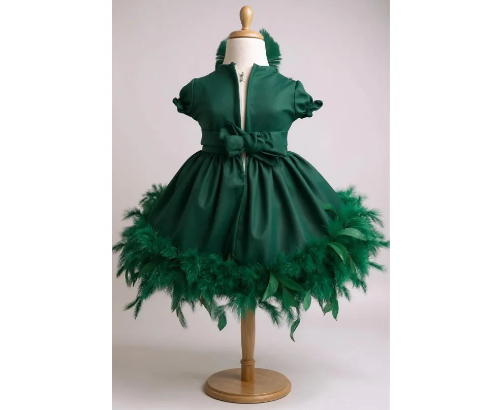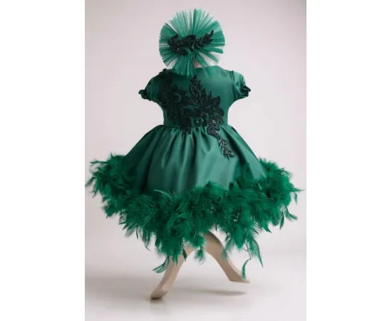 Rochita Botez Ann, cu Pene, Verde - DPH34