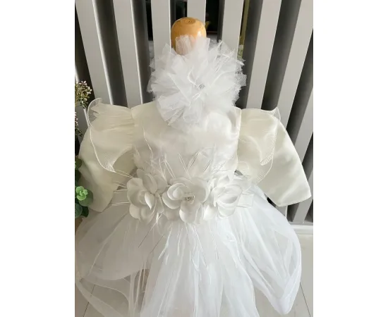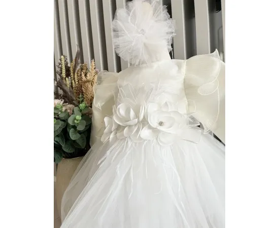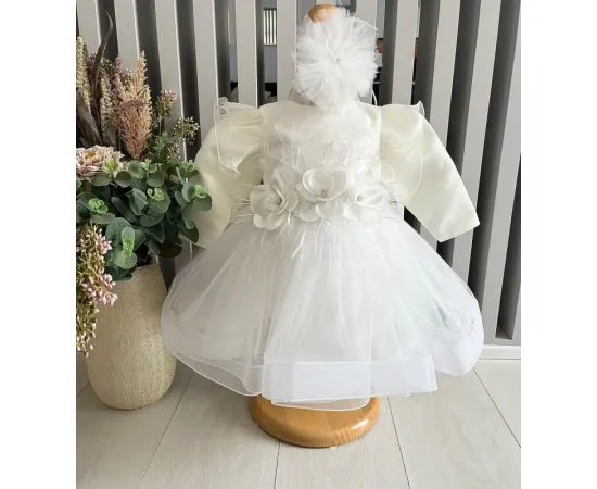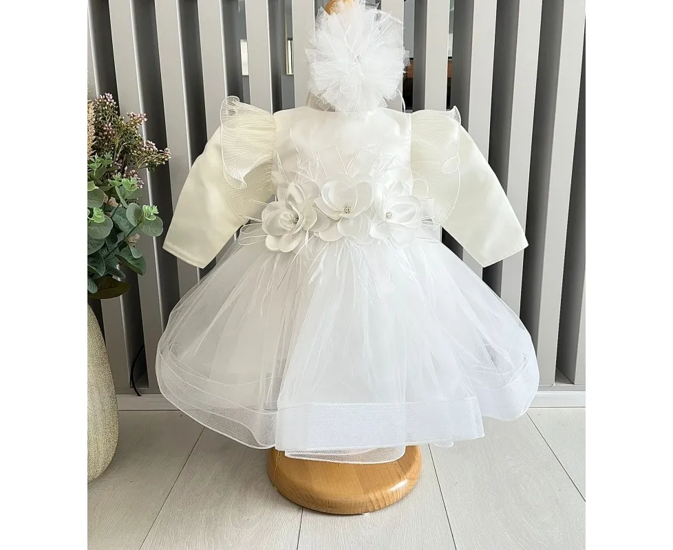 Rochita Botez Demi, cu Flori, Alb - DPH86
