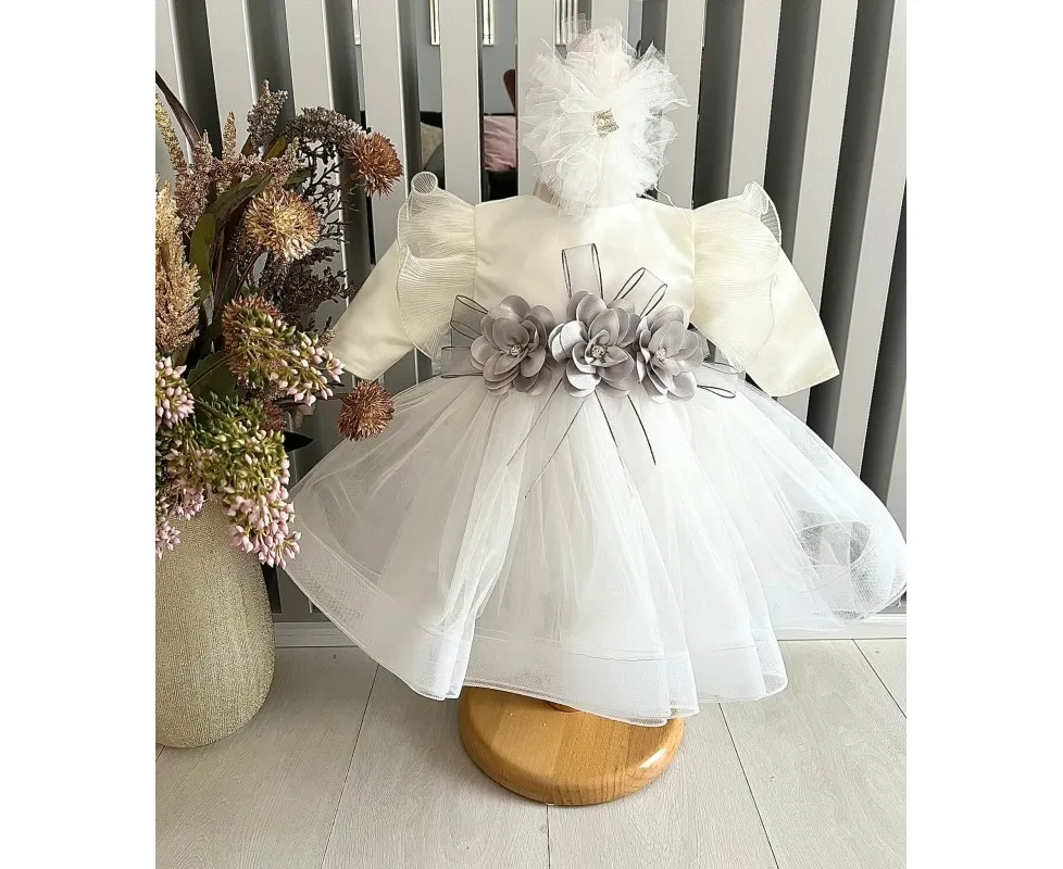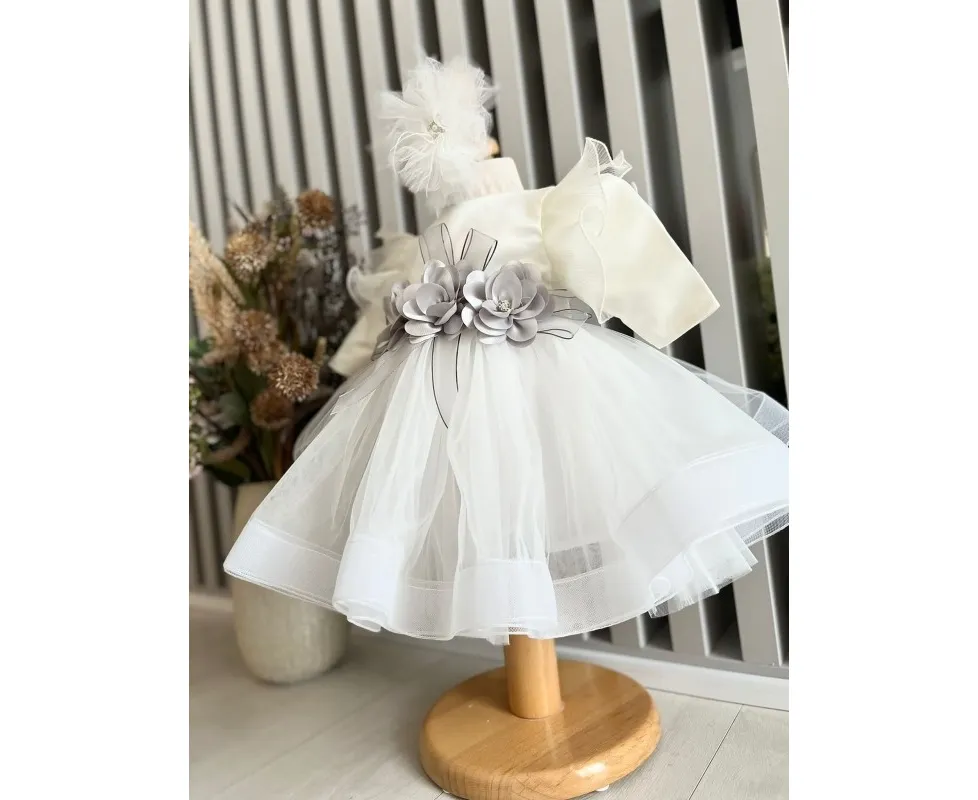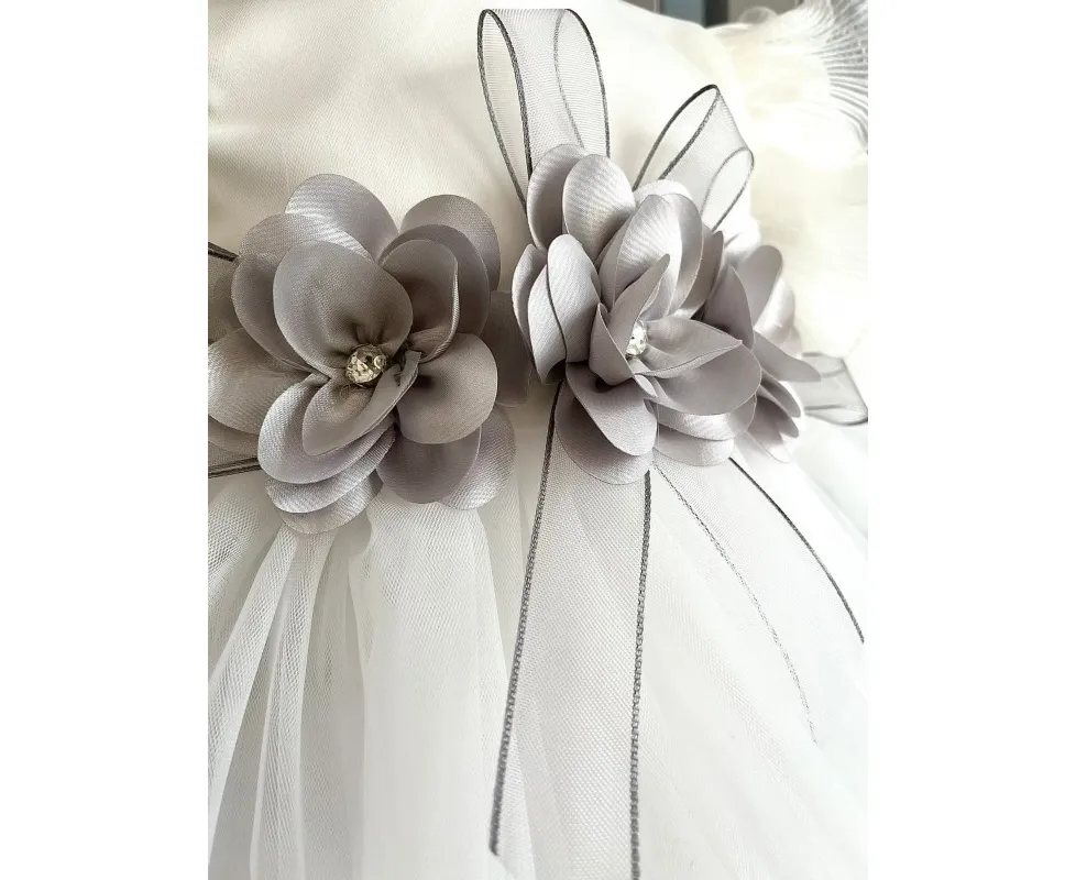 Rochita Botez Demi, cu Flori, Alb - DPH88