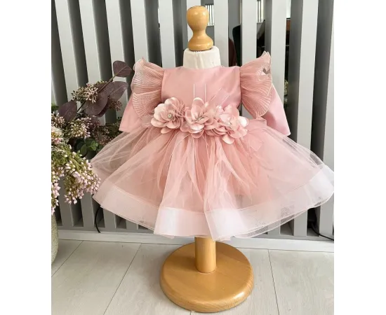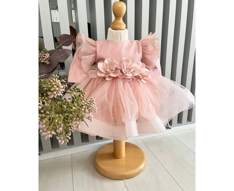 Rochita Botez Demi, cu Flori, Roz - DPH87