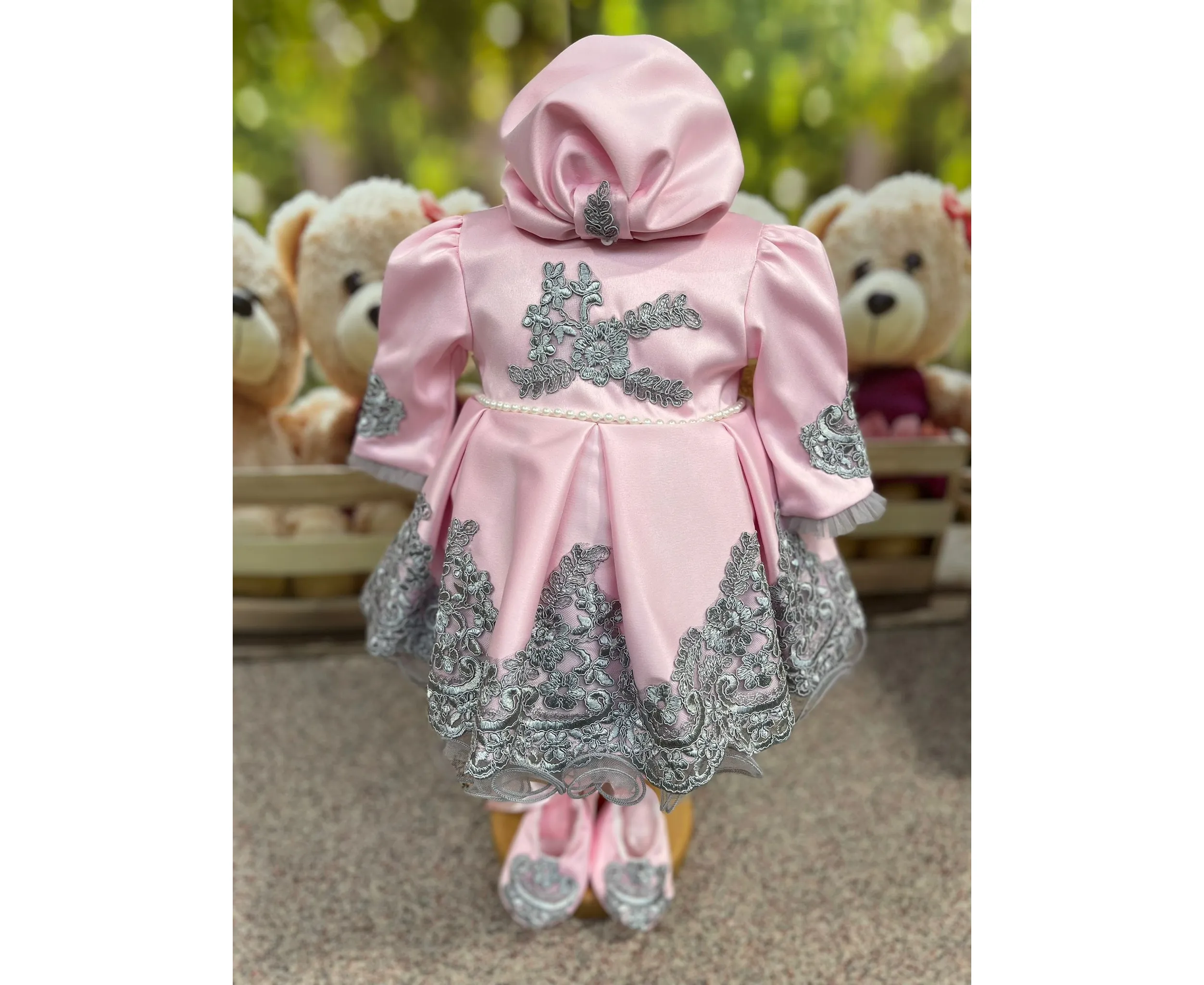Setul contine rochita, bentita, botosei