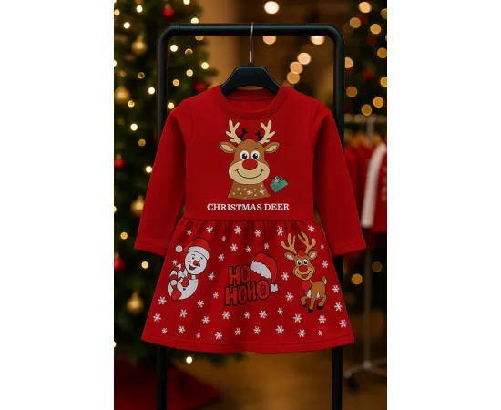O rochiță adorabilă, plină de farmecul sărbătorilor! Realizată din materiale moi și confortabile, este perfectă pentru serbări, poze de familie sau vizita la Moș Crăciun. Modelul cu motive tradiționale și accente festive îi va face pe toți să zâmbească, iar croiul lejer oferă libertate de mișcare pentru joacă și dans. ✨