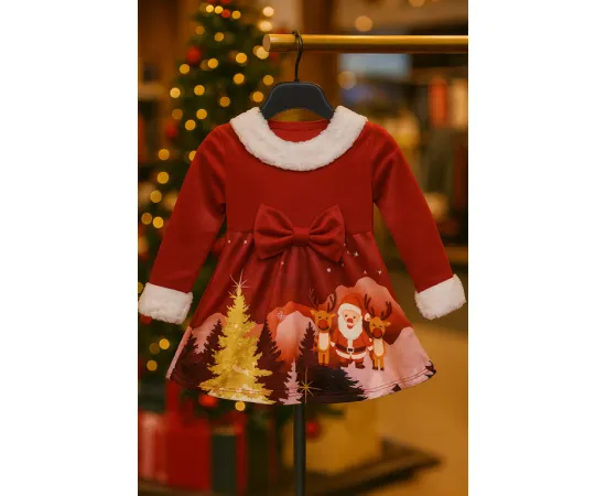 O rochiță adorabilă, plină de farmecul sărbătorilor! Realizată din materiale moi și confortabile, este perfectă pentru serbări, poze de familie sau vizita la Moș Crăciun. Modelul cu motive tradiționale și accente festive îi va face pe toți să zâmbească, iar croiul lejer oferă libertate de mișcare pentru joacă și dans. ✨