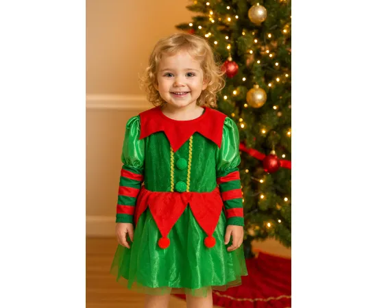 Această rochiță adorabilă de spiridușă este perfectă pentru serbările de Crăciun, petreceri tematice, colinde sau ședințe foto. Realizată din materiale fine și pline de culoare, rochița combină nuanțe clasice de verde și roșu, alături de accente festive care îi oferă un farmec de poveste. Croiala lejeră și detaliile atent lucrate oferă confort, libertate de mișcare și un look spectaculos.