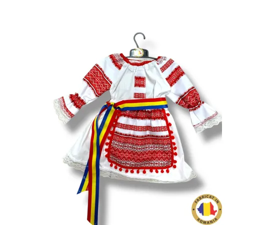 Această rochiță nu este doar un articol vestimentar, ci o expresie a identității și a valorilor românești, perfectă pentru cei care doresc să poarte cu mândrie un simbol al tradiției noastre.