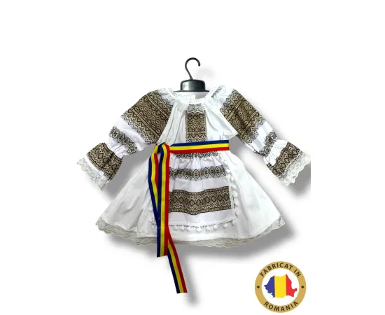 Rochita traditionala romaneasca cu broderie si brau tricolor - TDPITI13