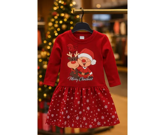 O rochiță adorabilă, plină de farmecul sărbătorilor! Realizată din materiale moi și confortabile, este perfectă pentru serbări, poze de familie sau vizita la Moș Crăciun. Modelul cu motive tradiționale și accente festive îi va face pe toți să zâmbească, iar croiul lejer oferă libertate de mișcare pentru joacă și dans. ✨