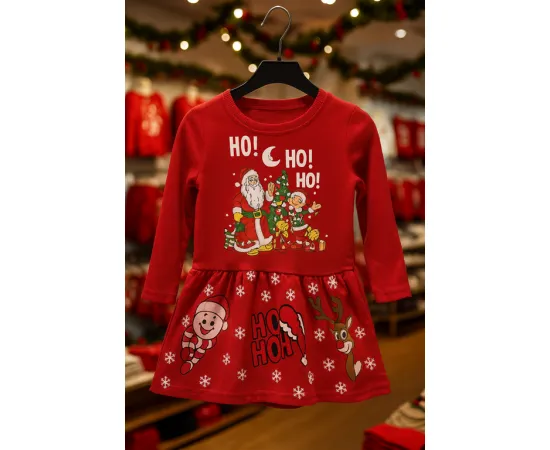 O rochiță adorabilă, plină de farmecul sărbătorilor! Realizată din materiale moi și confortabile, este perfectă pentru serbări, poze de familie sau vizita la Moș Crăciun. Modelul cu motive tradiționale și accente festive îi va face pe toți să zâmbească, iar croiul lejer oferă libertate de mișcare pentru joacă și dans. ✨