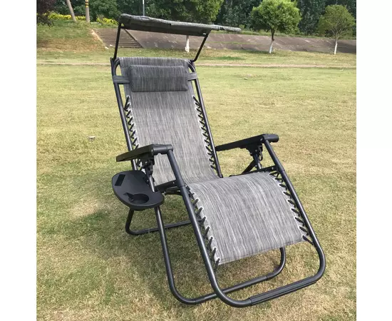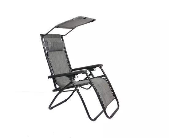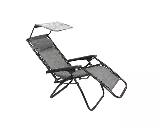 Scaun camping pliant, structura metalica, cu protectie solara, gri
