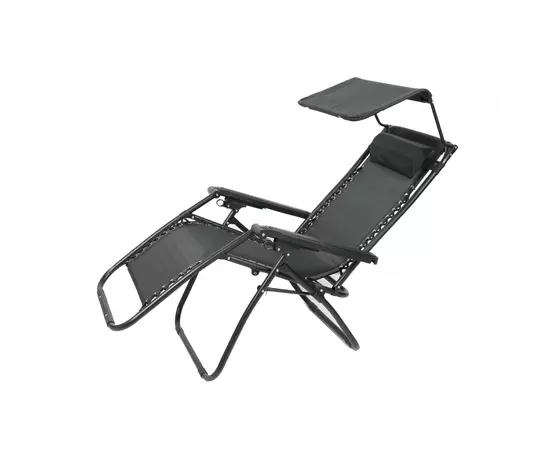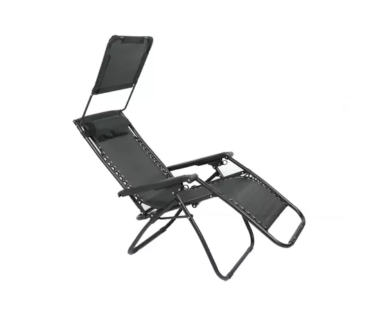 Scaun camping pliant, structura metalica, cu protectie solara, negru