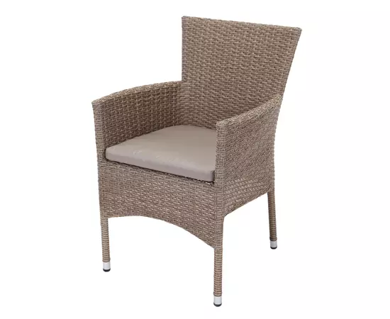 Durabil, rezistent la actiunea factorilor atmosferici nocivi si a razelor UV. Scaunul are scheletul fabricat din aluminiu, iar sezutul si spatarul sunt fabricate din polietilena. Produsul se livreaza cu o perna pentru sezut pentru un plus de confort.