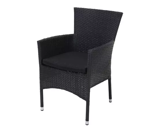 Scaunul negru este un scaun elegant cu design modern, cu suprafata care imita impletitura naturala din rattan. Poate fi integrat perfect in fiecare gradina, pe terase, sau poate fi utilizat pentru decorarea interioarelor.