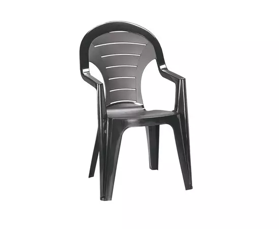 Scaun confortabil, confectionat din material plastic de calitate, culoare grafit, prevazut cu cotiere si spatar inalt, care se potriveste perfect in gradina, pe balcon sau pe terasa.