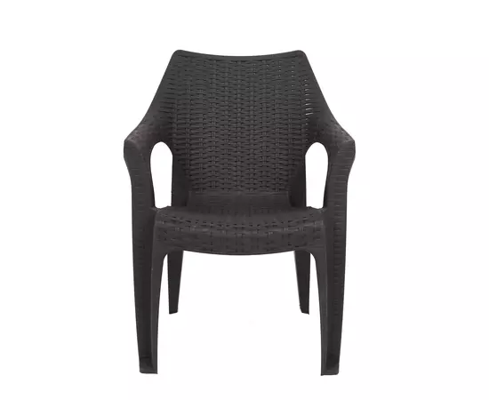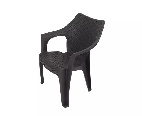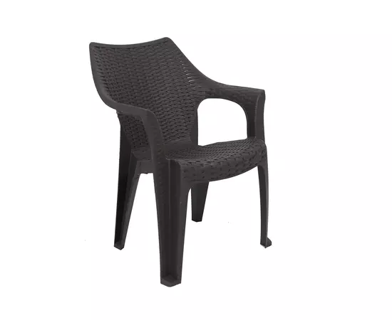 Scaunul este ideal pentru a va relaxa cu prietenii in propria gradina sau chiar la un picnic. Este confectionat din material plastic, maro, cu un design ce imita impletitura de ratan, iar pentru o mai buna relaxare este prevazut cu spatar si brate laterale.