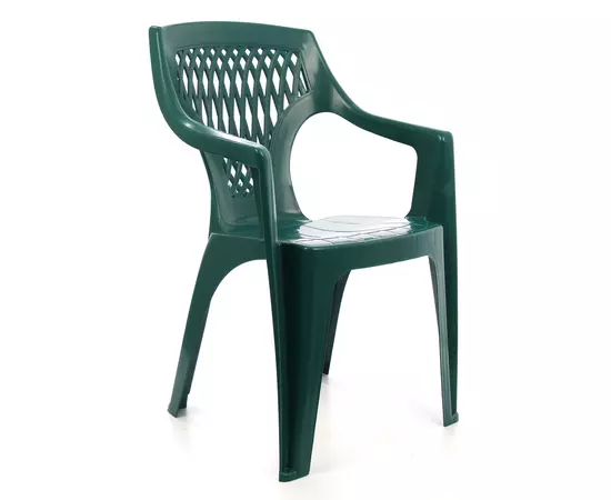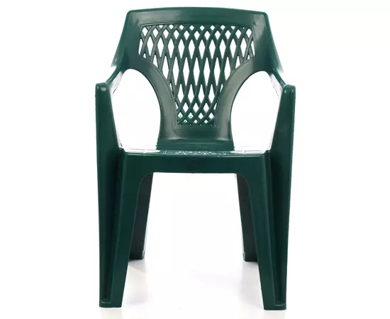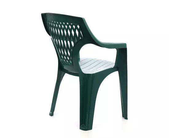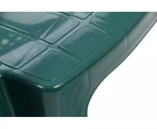 Scaunul este confectionat din material plastic, verde, cu dimensiunile: 41x56x82 cm, iar pentru o mai buna relaxare este prevazut cu spatar si brate laterale.