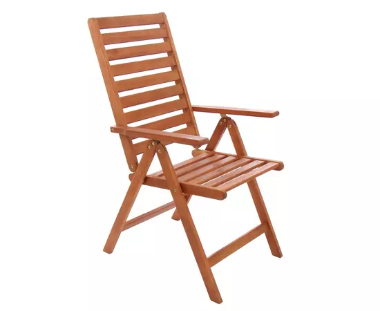 Scaunul este fabricat din lemn esenta exotica (eucalipt) special tratat pentru o durabilitatea cat mai mare in timp; are dimensiunea de 68.5x56.5x105 cm si este prevazut cu brate si spatar reglabil in 5 pozitii pentru un plus de confort. Poate fi integrat perfect in fiecare gradina, pe terase sau poate fi utilizat pentru decorarea interioarelor.