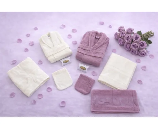 Halate de baie confectionate din bumbac 100%, cu o consistenta generoasa de 450gr./mp, din frotir moale si absorbant. Halatele au marimi universale (potrivite pentru aproape orice silueta) si se leagă cu ajutorul unui cordon