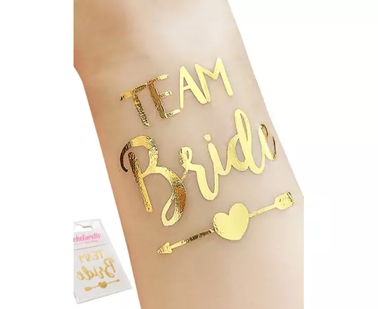 Team Bride autocolante pentru tatuaje care sunt ușor de utilizat. Pur și simplu desfaceti folia de pe autocolant, lipiți-l de piele, atașați-l cu o cârpă înmuiată in apa, așteptați o clipă și apoi dezlipiți-l.