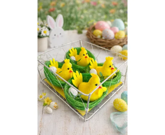 Set 4 Pui in Cuib, Decorativi Aranjamente de Paste, galbeni - Opas13