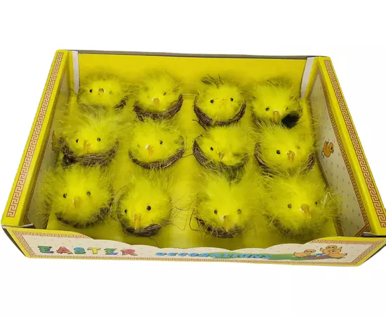Set 12 Pui in Cuib, Decorativi Aranjamente de Paste, galbeni
