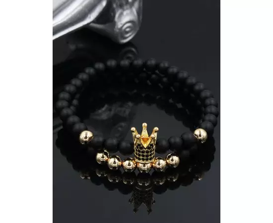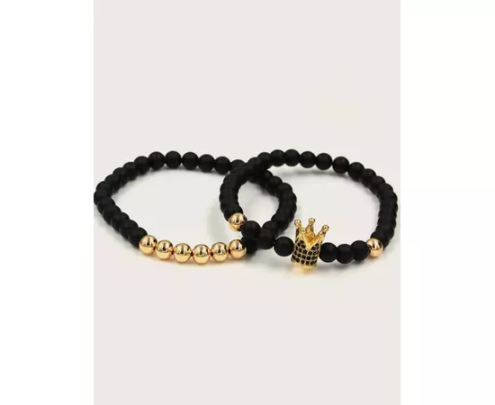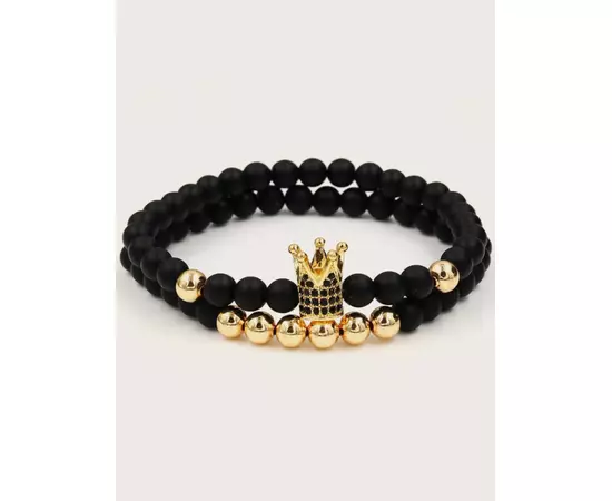 Acest set de 2 bratari au culorile negru si auriu, cu texturi diferite si pot fi purtata în combinație sau individual. Margelele sunt din piatra, iar coroana de rege simbolizează putere, încredere si siguranța de sine. Bratarile sunt elastice, versatile, putând fi asortate cu aproape orice ținută!
