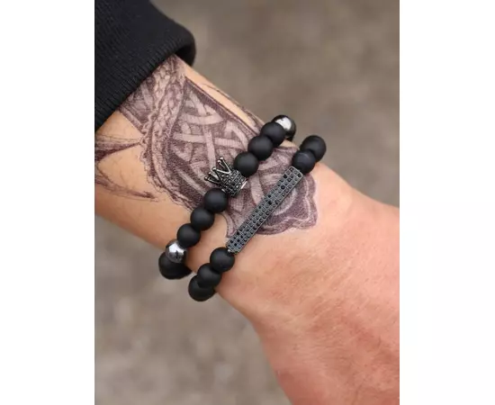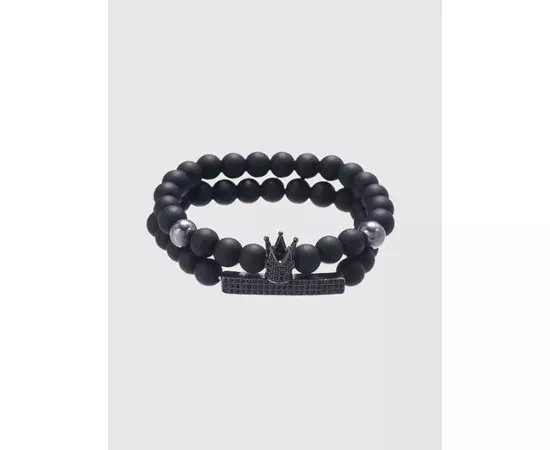Acest set de 2 bratari au texturi diferite si pot fi purtate în combinație sau individual. Margelele sunt din piatra, iar coroana de rege simbolizează putere, încredere si siguranța de sine. Bratarile sunt elastice, versatile, putând fi asortate cu aproape orice ținută!