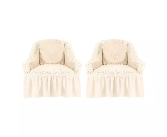 Set 2 Huse Fotoliu Elastice cu Volane, Crem Natur - HEP64