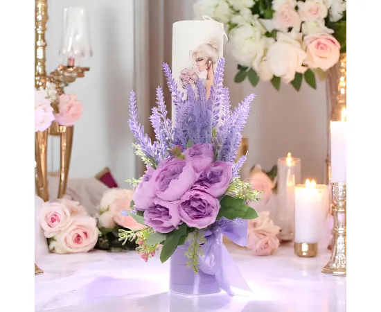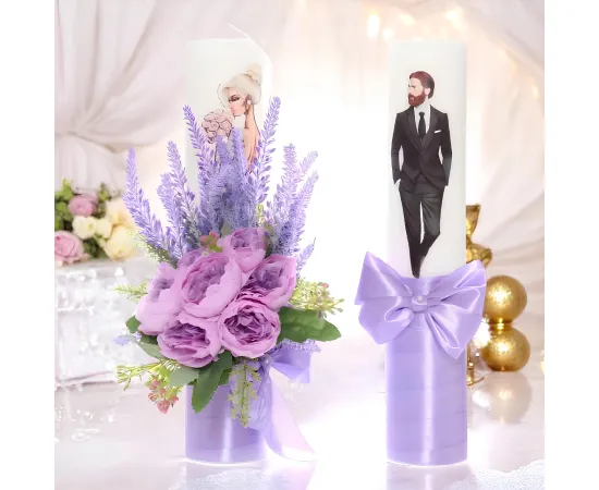 Set 2 Lumanari pentru Nunta cu flori artificiale LILA - LN03