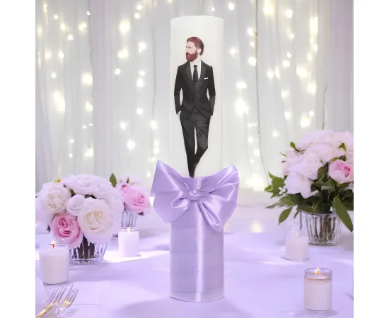 Fiecare lumânare din set este meticulos decorată cu flori delicate și o fundiță subtilă, aducând o notă de frumusețe și rafinament. Florile pot fi realizate din diverse materiale, cum ar fi țesături, mătase artificială sau alte materiale textile, iar fundița adaugă o atingere de eleganță și feminitate.
