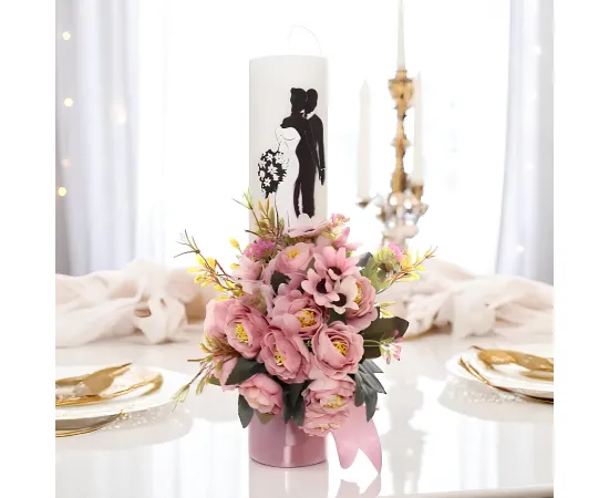 Setul de lumânări de cununie cu flori și fundiță este nu doar o amintire frumoasă a momentului special al căsătoriei, ci și o expresie vizuală a dragostei și devotamentului dintre parteneri.