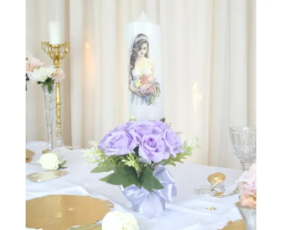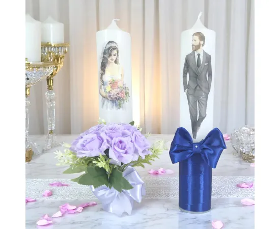 Setul de lumânări de cununie cu flori și fundiță este nu doar o amintire frumoasă a momentului special al căsătoriei, ci și o expresie vizuală a dragostei și devotamentului dintre parteneri.