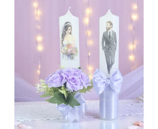 Setul de lumânări de cununie cu flori și fundiță este nu doar o amintire frumoasă a momentului special al căsătoriei, ci și o expresie vizuală a dragostei și devotamentului dintre parteneri.
