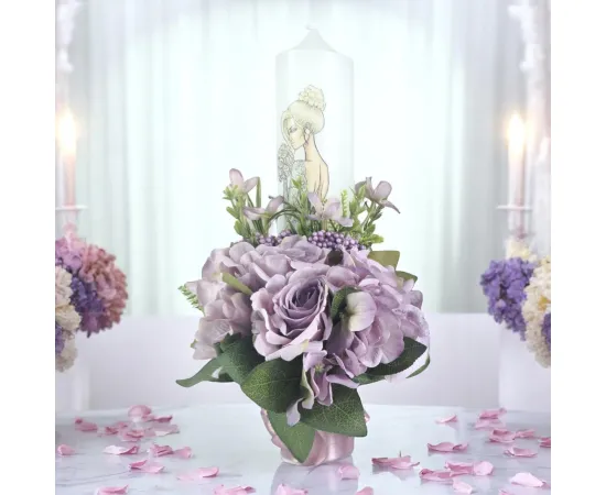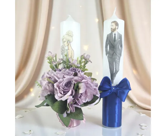Fiecare lumânare din set este meticulos decorată cu flori delicate și o fundiță subtilă, aducând o notă de frumusețe și rafinament. Florile pot fi realizate din diverse materiale, cum ar fi țesături, mătase artificială sau alte materiale textile, iar fundița adaugă o atingere de eleganță și feminitate.