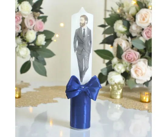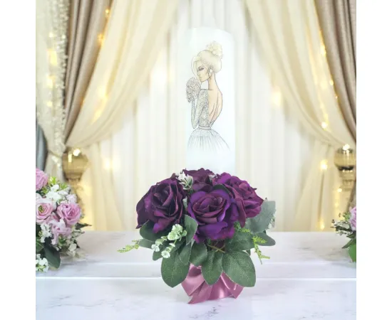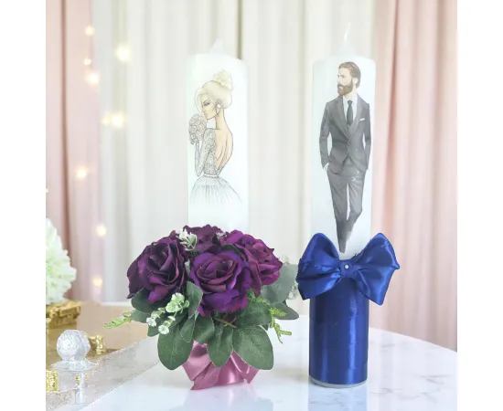 Fiecare lumânare din set este meticulos decorată cu flori delicate și o fundiță subtilă, aducând o notă de frumusețe și rafinament. Florile pot fi realizate din diverse materiale, cum ar fi țesături, mătase artificială sau alte materiale textile, iar fundița adaugă o atingere de eleganță și feminitate.