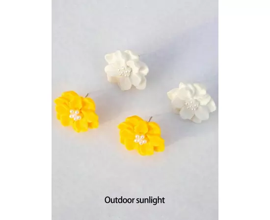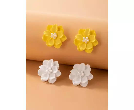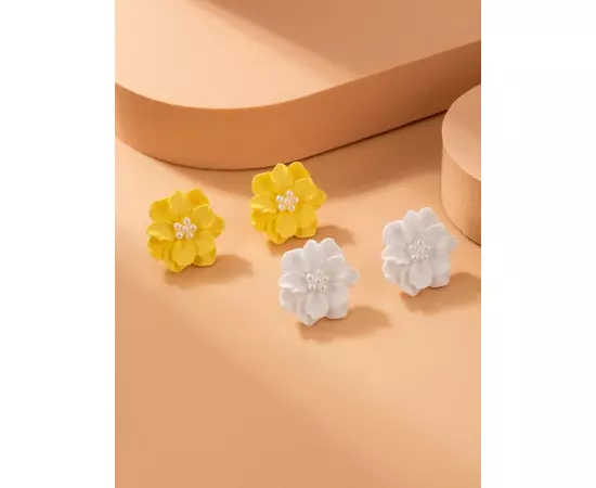 Set 2 Perechi de Cercei Floare Alb si Galben - 68265