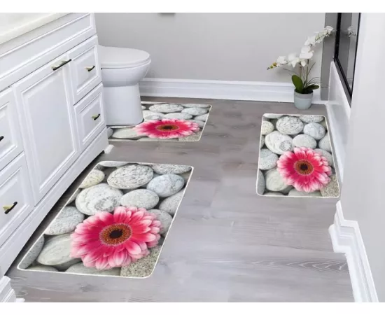 Pachetul de livrare include 1 covoras pentru baie, 1 covoras pentru suportul de la chiuveta, 1 covoras pentru wc.