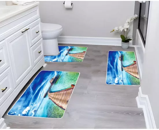 Pachetul de livrare include 1 covoras pentru baie, 1 covoras pentru suportul de la chiuveta, 1 covoras pentru wc.