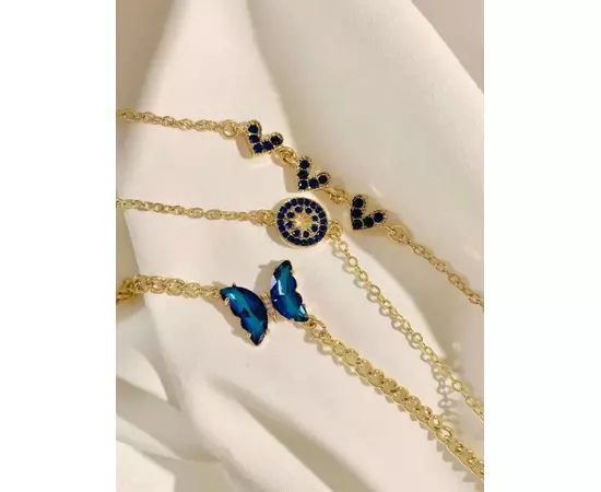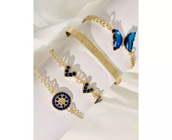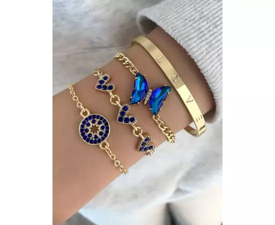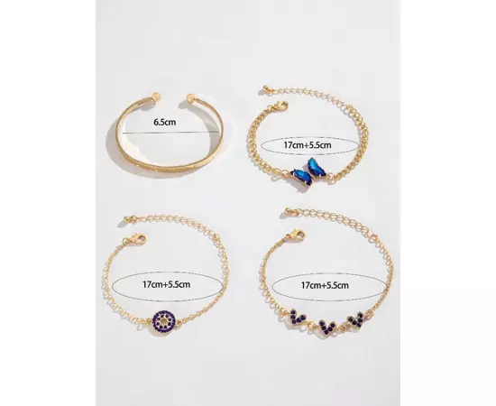 Set 4 Bratari, Auriu cu Strasuri Albastre - 78373