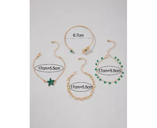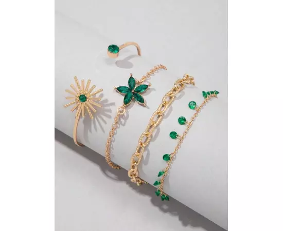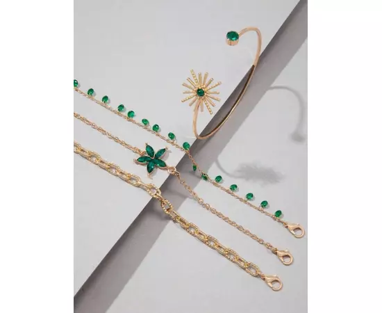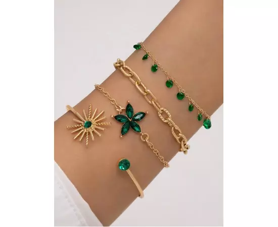 Set 4 Bratari, Auriu cu Strasuri Verzi - 65267