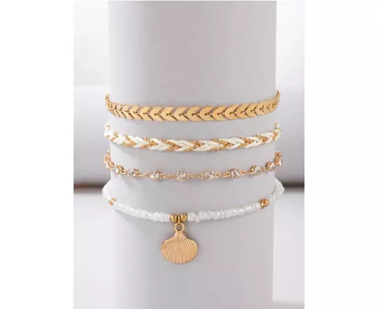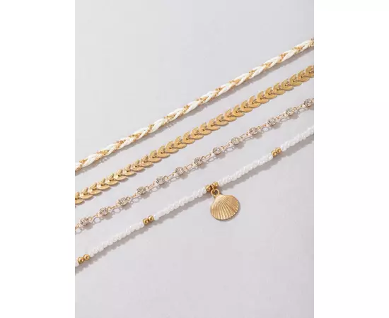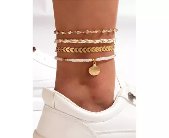 Set 4 Bratari de Picior Alb si Auriu - 25973