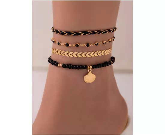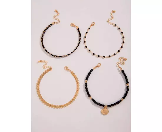 Set 4 Bratari de Picior Negru si Auriu - 25973