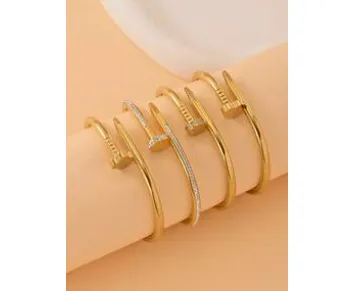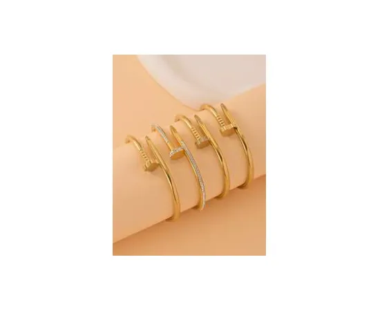 Set elegant „Quarteto”, compus din 4 brățări din oțel titan de înaltă calitate, fiecare cu un design distinct, dar perfect armonizat. Brățările sunt finisate cu lustru în oglindă și placate cu vid, oferind rezistență superioară la uzură și estompare. Stilul clasic-modern le face ușor de asortat atât pentru purtare zilnică, cât și pentru ocazii speciale. Materialul durabil, aspectul rafinat și varietatea modelelor transformă acest set într-o alegere ideală pentru un look elegant.